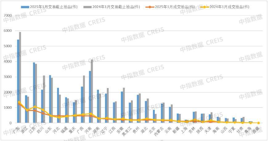 图:2022—2025年1月全国355城法拍市场挂拍、交易趋势